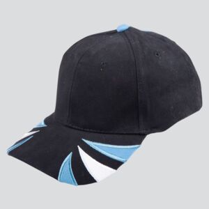 Description: 6 panel structured laid back front. With contrast colour triangle shape on peak & back of crown. Gun metal buckle & tuck in return.